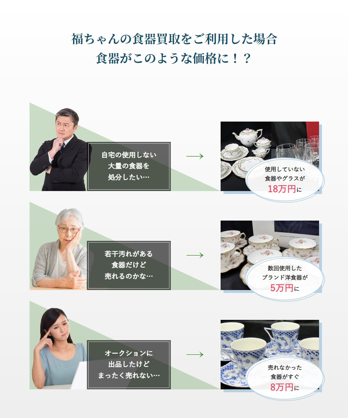 状態不良のブランド食器を処分する前に一度、買取専門福ちゃんの無料査定を利用しましょう。