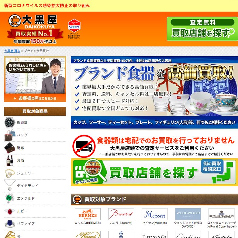 • 全国240店舗以上からなる大黒屋ネットワークで常に最新のブランド食器買取相場を調査