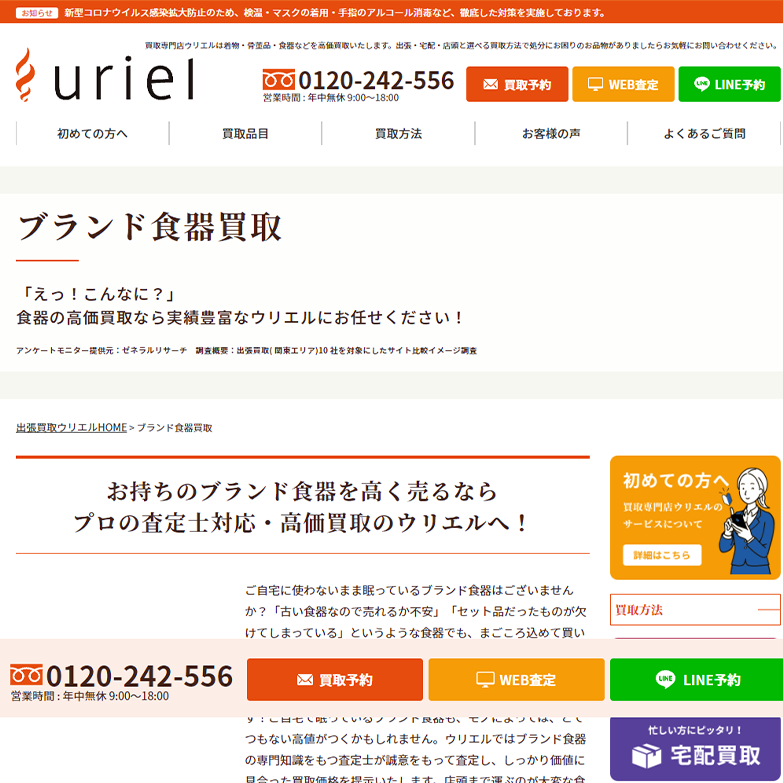 ブランド食器の買取は、査定員に直接相談をすることができる出張買取や在宅が難しい方でも快適に利用できる宅配買取をおすすめしています。
